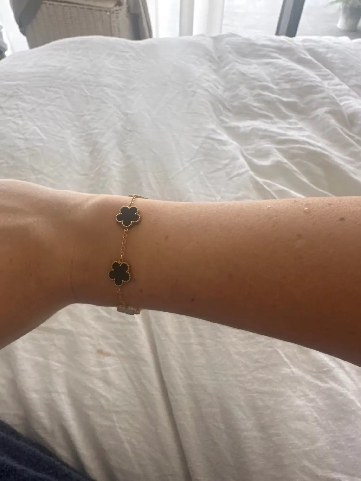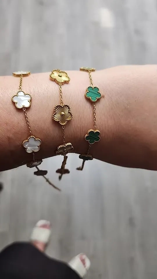 I wasn't expecting to love this bracelet as much as I do now. It truly is a nuanced piece of art that brings a classy touch to my outfits. The five-leaf clover detail is not only symbolic but also a conversation starter. It's one of the most beautifully crafted accessories I've ever owned. If you want sophistication with a hint of glam, this is the bracelet for you. Grateful to have stumbled upon this gem!